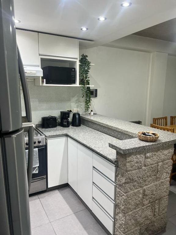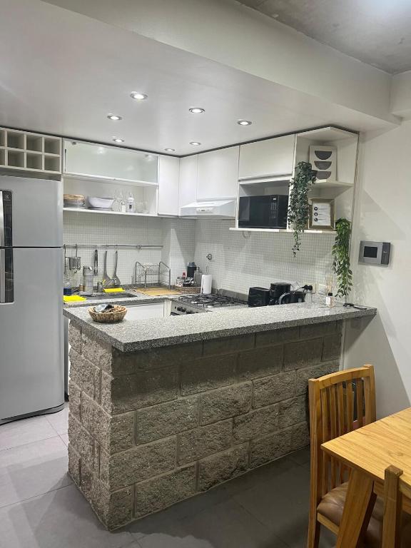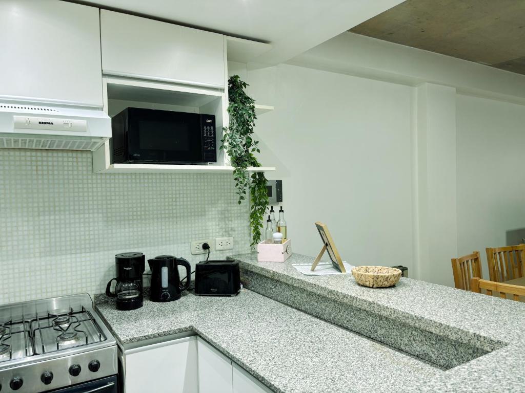 El dormitorio principal cuenta con una cómoda cama doble, y el baño completo tiene bidet, ducha y se entrega con amenities de cortesía: shampoo, acondicionador, jabón, papel higiénico, planchita y secador de pelo. También incluimos un kit básico de cocina con infusiones, azúcar, aceite y sal para que no tengas que preocuparte por nada al llegar.