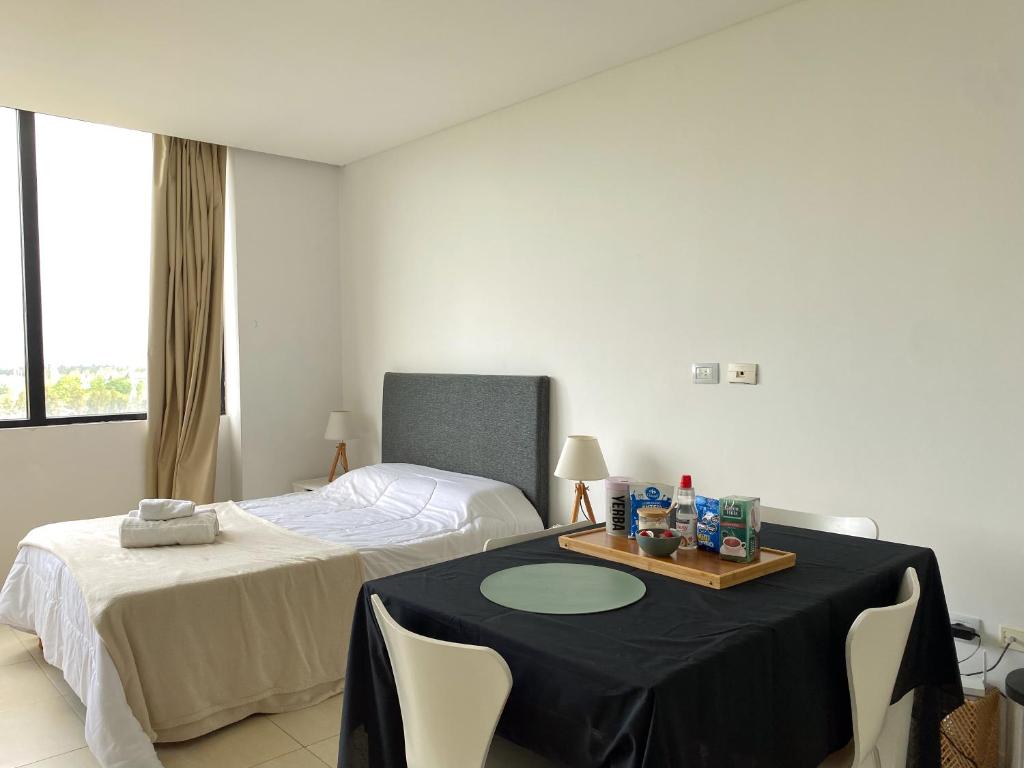 Este departamento ofrece un ambiente acogedor con cama doble y un futon de dos cuerpos. El área de comedor está equipada con mesa y sillas para tres personas, perfecta para desayunos tranquilos o cenas íntimas.