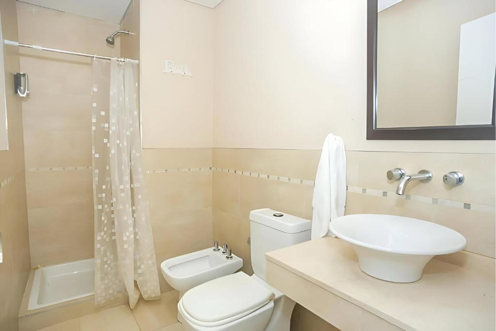 El baño es amplio y funcional, y cuenta con todo lo necesario para que solo tengas que traer tus valijas y disfrutar. Encontrarás shampoo, acondicionador, jabón, y un kit para mujeres.