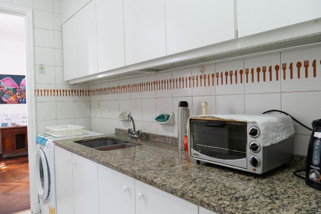 El departamento está en el tercer piso y tiene ascensor. Es un ambiente tranquilo y luminoso, con un amplio living equipado con TV por cable, sillones y mesa. También cuenta con un balcón para relajarte y tomar aire.