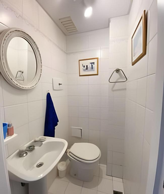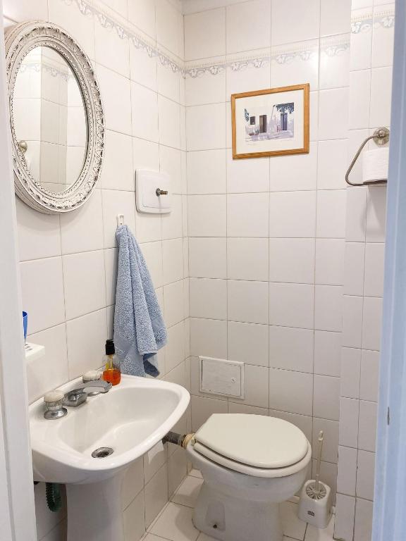 Baño compartido limpio, lavadero disponible, ambiente ordenado y anfitriona atenta que vive en el departamento.